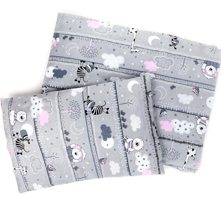 Šis komplektas yra skirtas patiems mažiausiems, pačias pirmiausias savo dienas praleidžiantiems lopšyje. Užvalkaliukai yra siuvami iš natūralios 100% medvilninės drobės.