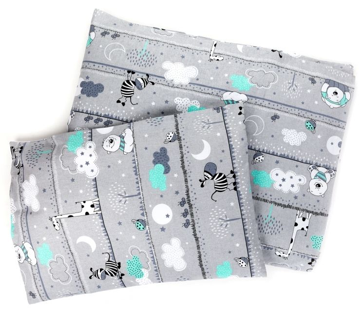 Šis komplektas yra skirtas patiems mažiausiems, pačias pirmiausias savo dienas praleidžiantiems lopšyje. Užvalkaliukai yra siuvami iš natūralios 100% medvilninės drobės.
