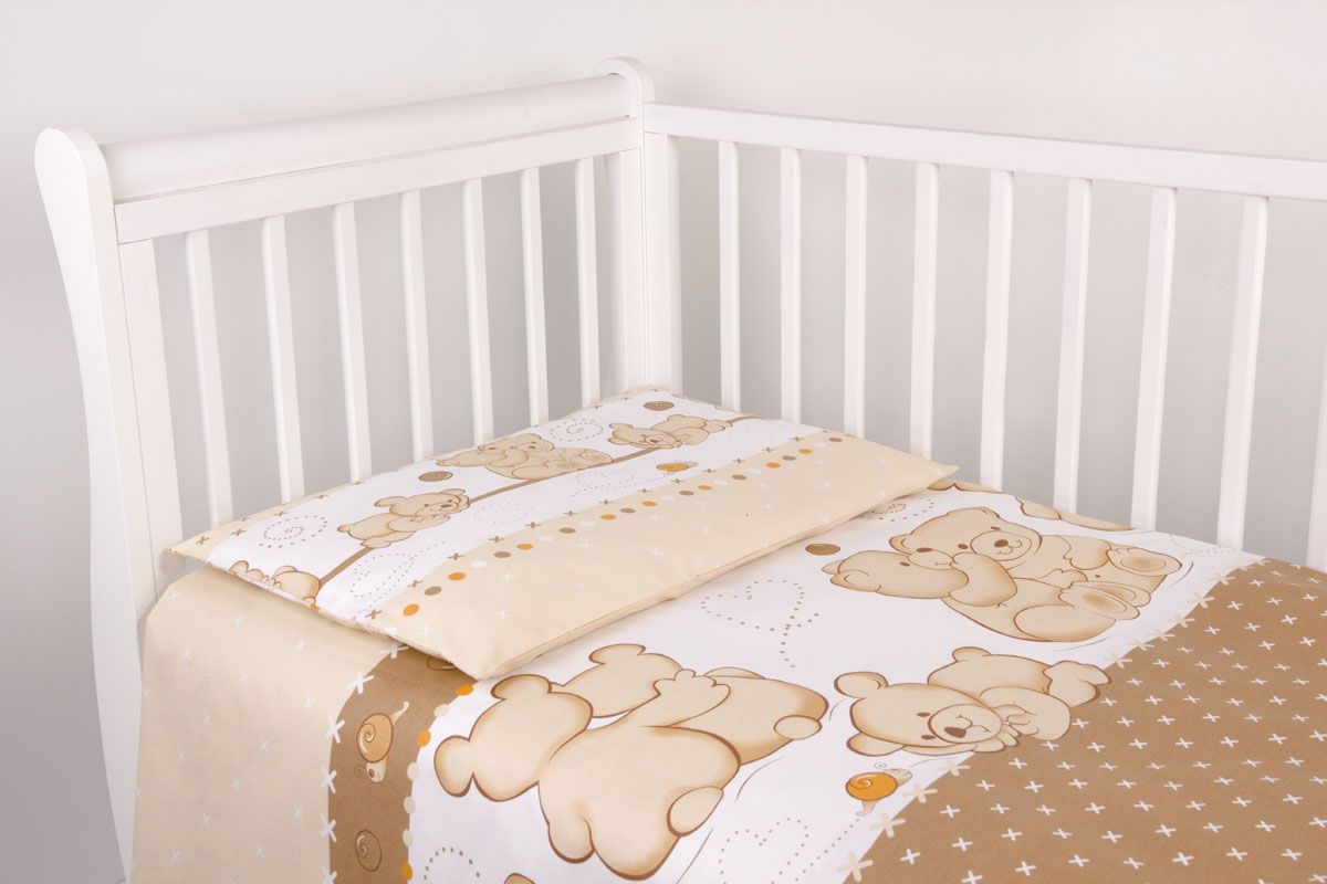 Aprašymas Patalynė kūdikio lovytei 135x100 "Meškiukai" bežinės spalvos