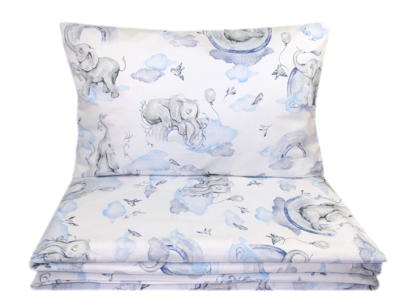 Aprašymas Kūdikio patalynės komplektas 135x100 "ELEPHANTS" melsvas