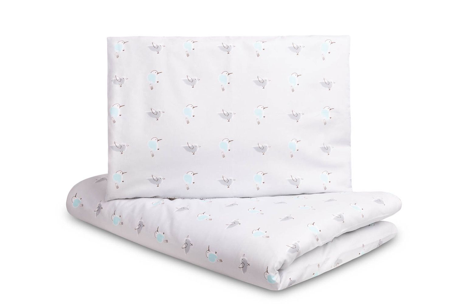 Nuostabus medvilninis patalynės komplektas kūdikiui su paukščiukais susideda iš: