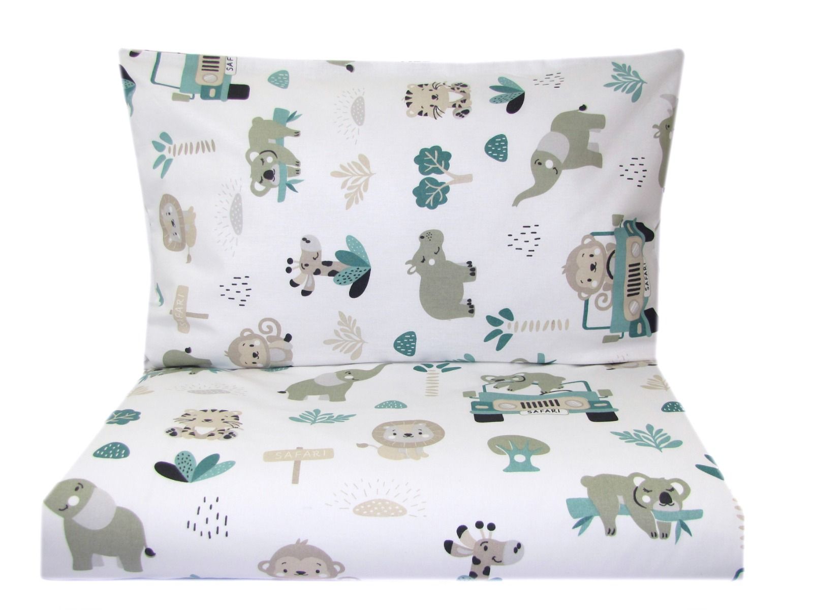 Nuostabus medvilninis patalynės komplektas kūdikiui ar vaikui su safari motyvais susideda iš: