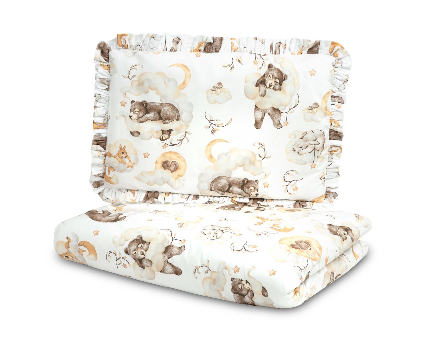 Kaip miela žiūrėti į miegantį kūdikį. Ir kaip svarbu žinoti, jog mažylio miego niekas nesutrukdys. Tam yra būtina kokybiška patalynė. Patalynės komplektas pasiūtas iš 100% aukščiausios kokybės medvilnės, sukurančios švelnumo pojutį. Patalynė gerai skalbiasi ir ilgai nepraranda savo originalių spalvų.
