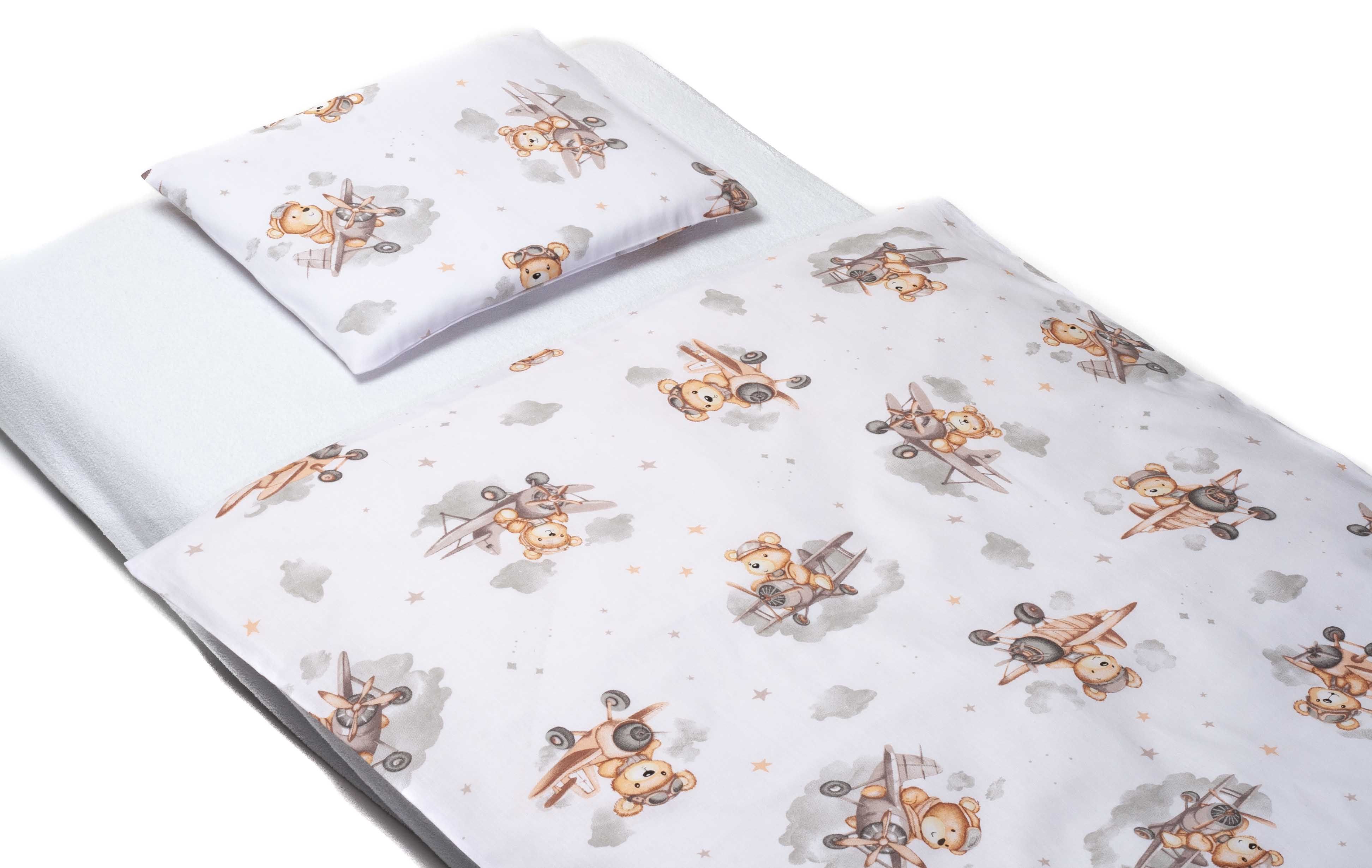Aprašymas Patalynė kūdikio lopšiukui 80x70cm "Bear pilot beige"