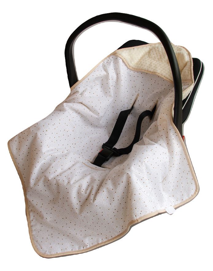 Aprašymas Pledas automobilinei kėdutei "Cappuccino" 80x80 cm bežinis pliušas, baltas fonas su auksinėmis žvaigždutėmis