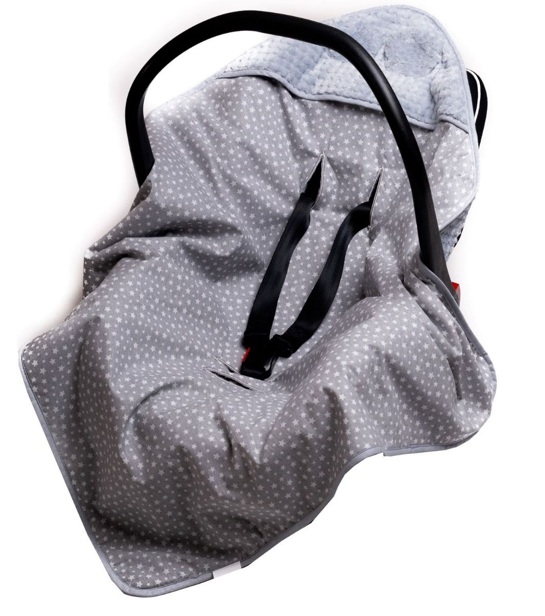Aprašymas Pledas automobilinei kėdutei "Milky way" 80x80 cm pilkas pliušas, pilkas fonas su žvaigždutėmis