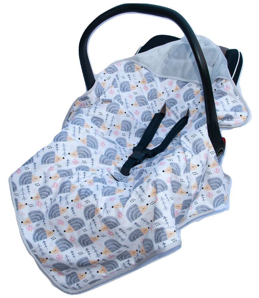 Aprašymas Pledas automobilinei kėdutei "Hedgehog" 80x80 cm pilkas pliušas, baltas fonas su ežiukais