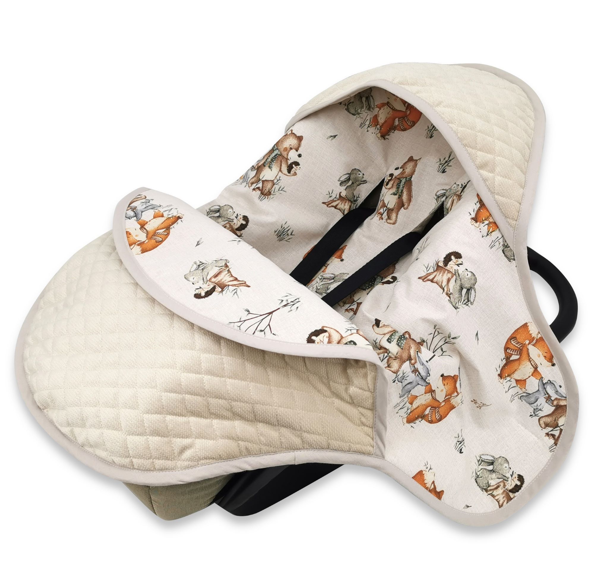 Aprašymas Pledas vokelis automobilinei kėdutei "Forest family beige"