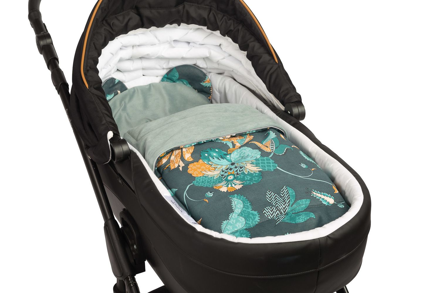 Specialiai kūdikiams sukurtas minkštas, pūko lengvumo komplektas vežimėliui. Viena pleduko pusė yra marga medvilninė, kita pagaminta iš minkšto aksomo, šiltos ir malonios prisilietimui. Apklotėlis gali tarnauti kaip kaldrytė arba kaip minkštas daugiafunkcinis pledukas. Apklotėlio pašiltinimo sluoksnis yra ne itin storas, todėl apklotas kompaktiškai susilanksto.