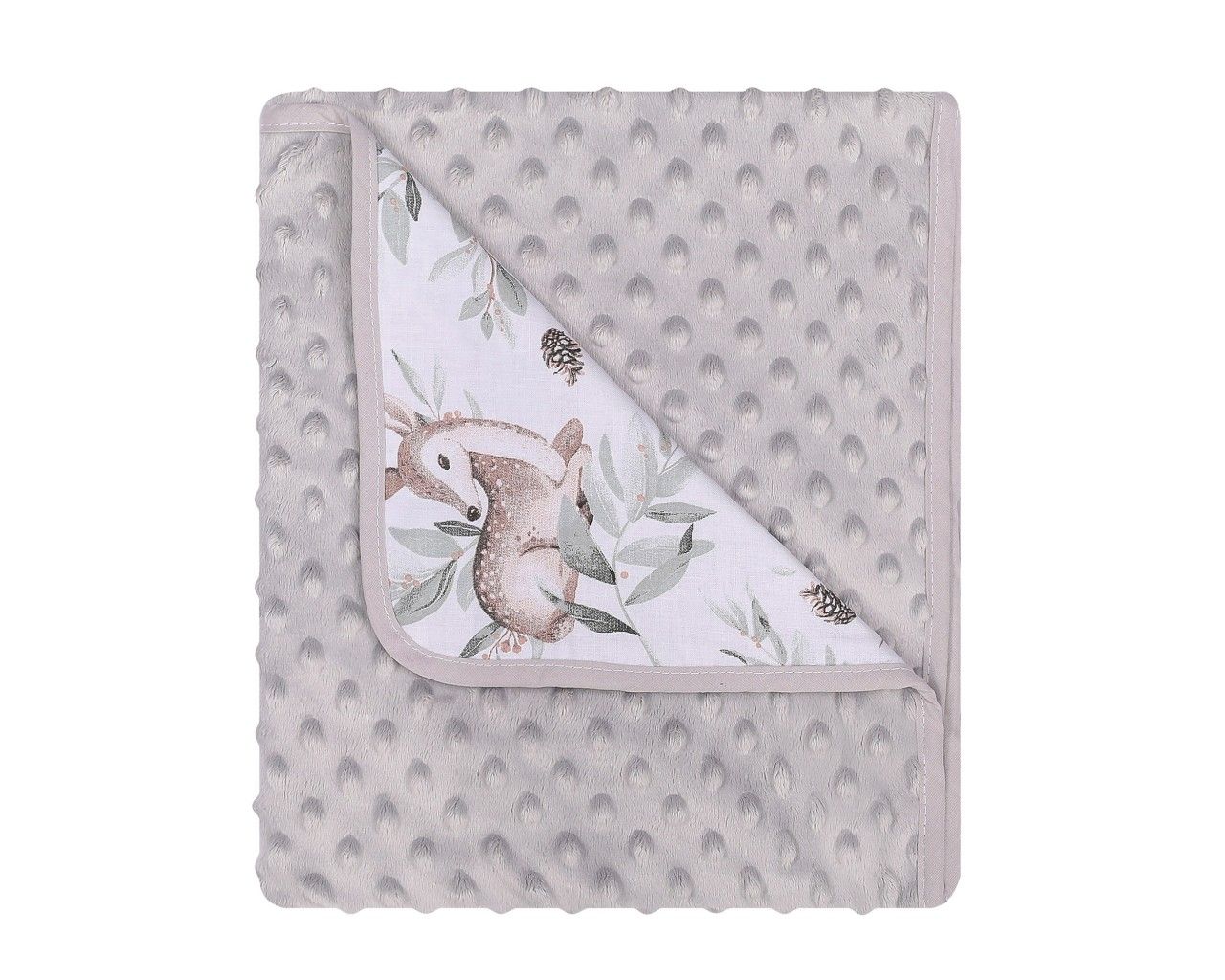 Pledukas kūdikiui Bunny- nuostabus sprendimas pasivaikščiojimams! Pledukas kūdikiui yra dvipusis, todėl priklausomai nuo nuotaikos ar aplinkybių gali būti naudojamas iš bet kurios pusės. Specialiai kūdikiams sukurtas minkštas, pūko lengvumo apklotėlis. Viena pleduko pusė yra medvilninė, kita minkšto pliušinio audinuko minky, šilto ir malonaus prisilietimui. Apklotas gali tarnauti kaip kaldrytė arba kaip minkštas daugiafunkcinis pledukas. Apklotėlio pašiltinimo sluoksnis yra ne itin storas, todėl apklotas kompaktiškai susilanksto.