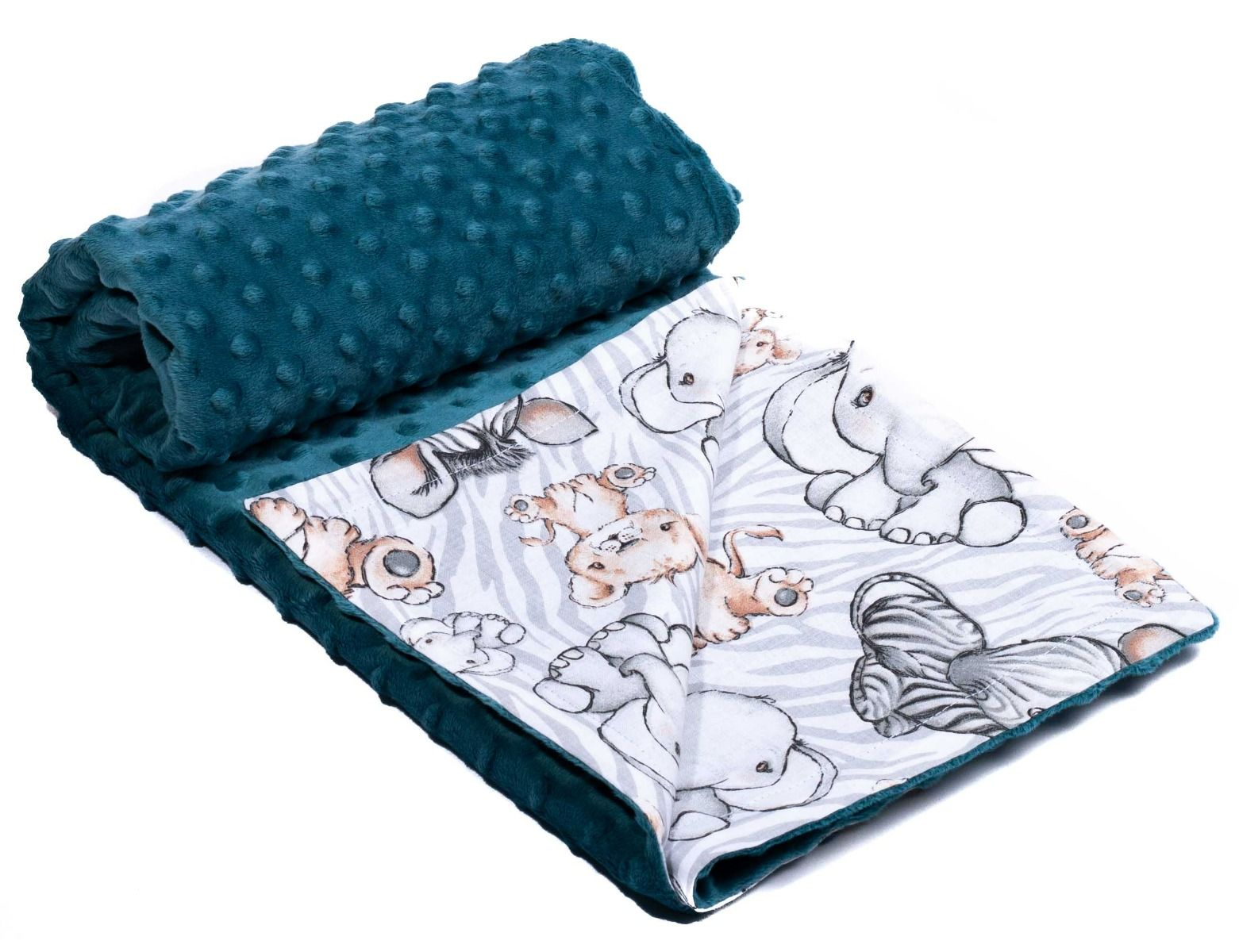 Pledukas kūdikiui - nuostabus sprendimas pavasario-vasaros pasivaikščiojimams arba namuose, kai nereikia labai šiltai apkloti, bet norisi suteikti jaukumo! Pledukas dvipusis, tačiau be pašiltinimo. Pledukas kūdikiui yra dvipusis, todėl priklausomai nuo nuotaikos ar aplinkybių gali būti naudojamas iš bet kurios pusės. Specialiai kūdikiams sukurtas minkštas, pūko lengvumo apklotėlis. Viena pleduko pusė yra medvilninė, kita minkšto pliušinio audinuko minky, šilto ir malonaus prisilietimui. Apklotelis gali tarnauti kaip kaldrytė arba kaip minkštas daugiafunkcinis pledukas. Apklotas kompaktiškai susilanksto.