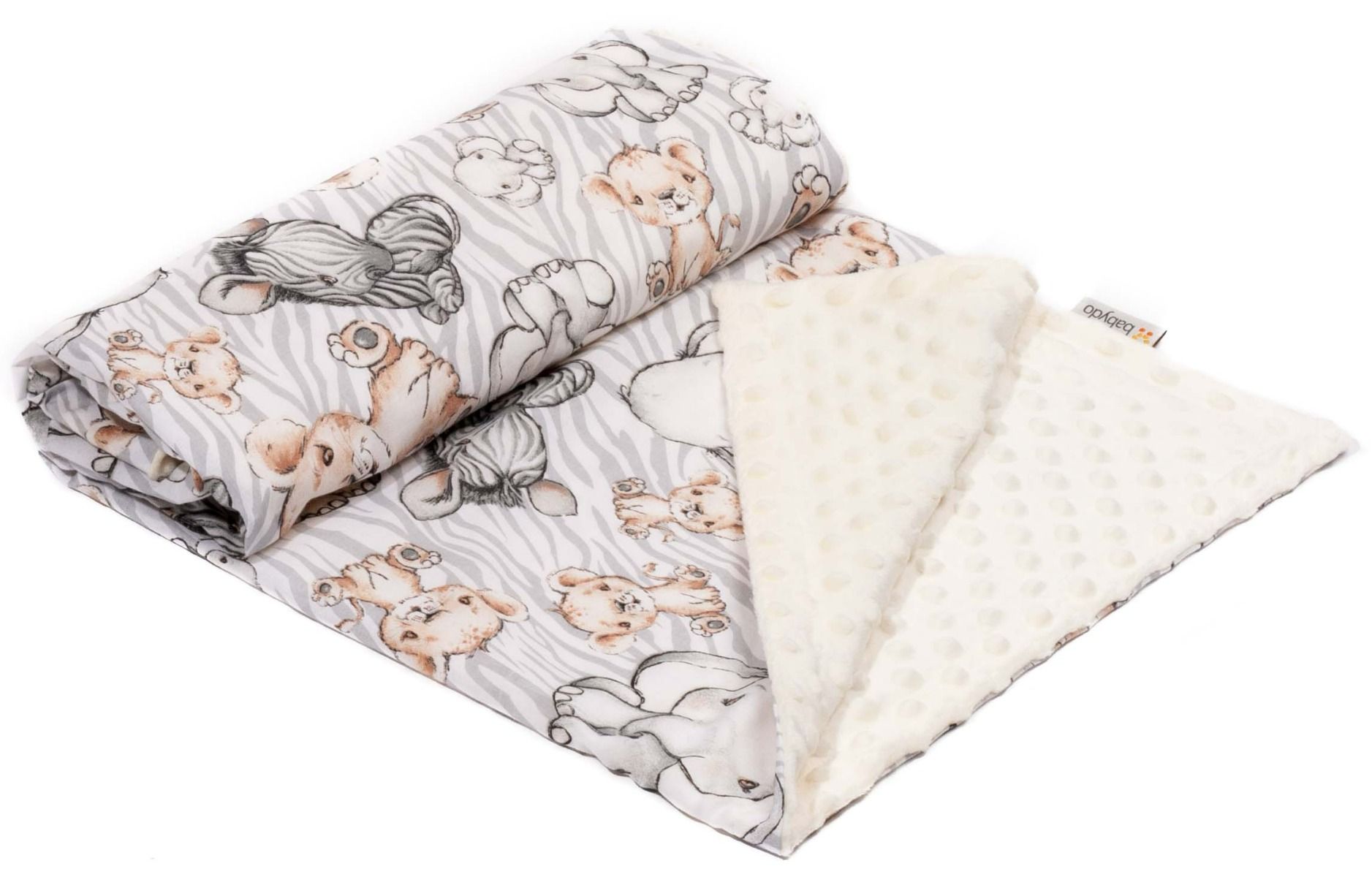 Pledukas kūdikiui - nuostabus sprendimas pavasario-vasaros pasivaikščiojimams arba namuose, kai nereikia labai šiltai apkloti, bet norisi suteikti jaukumo! Pledukas dvipusis, tačiau be pašiltinimo. Pledukas kūdikiui yra dvipusis, todėl priklausomai nuo nuotaikos ar aplinkybių gali būti naudojamas iš bet kurios pusės. Specialiai kūdikiams sukurtas minkštas, pūko lengvumo apklotėlis. Viena pleduko pusė yra medvilninė, kita minkšto pliušinio audinuko minky, šilto ir malonaus prisilietimui. Apklotelis gali tarnauti kaip kaldrytė arba kaip minkštas daugiafunkcinis pledukas. Apklotas kompaktiškai susilanksto.
