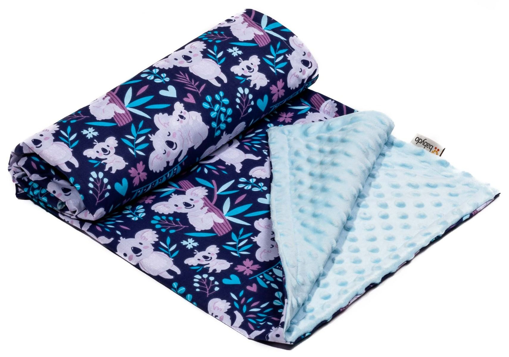 Pledukas kūdikiui - nuostabus sprendimas pavasario-vasaros pasivaikščiojimams arba namuose, kai nereikia labai šiltai apkloti, bet norisi suteikti jaukumo! Pledukas dvipusis, tačiau be pašiltinimo. Pledukas kūdikiui yra dvipusis, todėl priklausomai nuo nuotaikos ar aplinkybių gali būti naudojamas iš bet kurios pusės. Specialiai kūdikiams sukurtas minkštas, pūko lengvumo apklotėlis. Viena pleduko pusė yra medvilninė, kita minkšto pliušinio audinuko minky, šilto ir malonaus prisilietimui. Apklotelis gali tarnauti kaip kaldrytė arba kaip minkštas daugiafunkcinis pledukas. Apklotas kompaktiškai susilanksto.