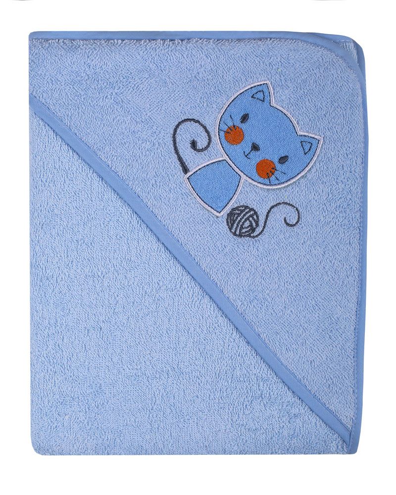 Rankšluostis kūdikiui "Kitty" su gobtuvu 80x80cm melsvas