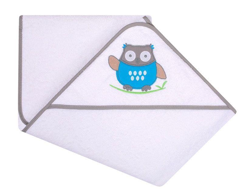 Rankšluostis kūdikiui "Owl" su gobtuvu 80x80cm baltas