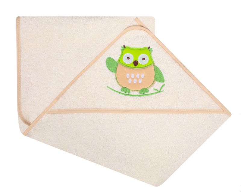 Rankšluostis kūdikiui "Owl" su gobtuvu 80x80cm smėlio spalvos