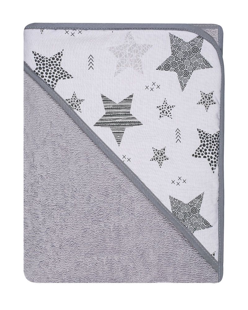 Aprašymas Rankšluostis kūdikiui "Galaxy" su gobtuvu 80x80 cm "frotinis" pilkos spalvos