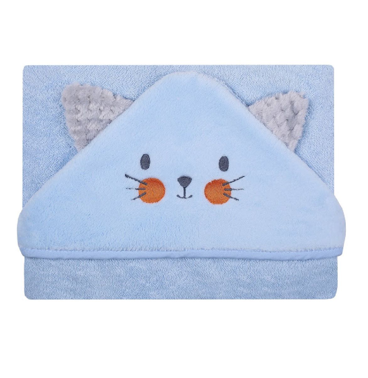 Rankšluostis kūdikiui "Cat" su gobtuvu 100x100cm "frotte" mėlynas