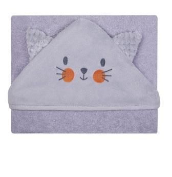 Rankšluostis kūdikiui "Cat" su gobtuvu 100x100cm "frotte" pilkas