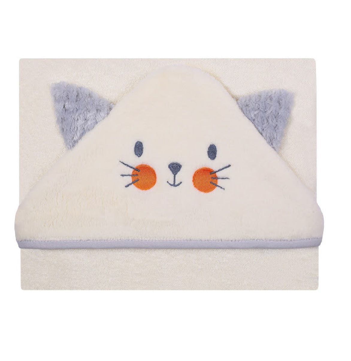 Rankšluostis kūdikiui "Cat" su gobtuvu 100x100cm "frotte" šviesiai gelsvas