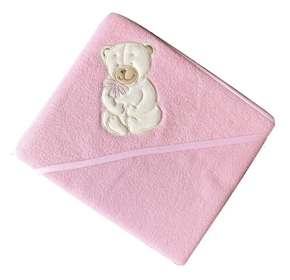 Rankšluostis kūdikiui "Sweet bear" su gobtuvu 80x80cm "termofrotte" rožinės spalvos