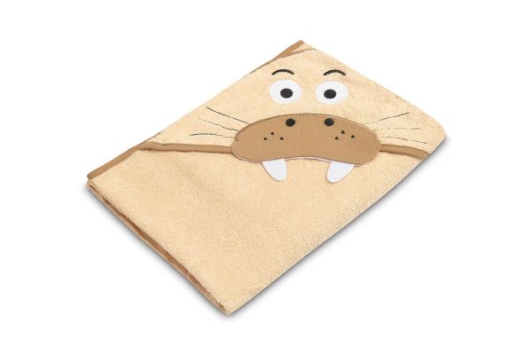 3D Rankšluostis kūdikiui "Seal" su gobtuvu 100x100cm "frotte" bež.sp.