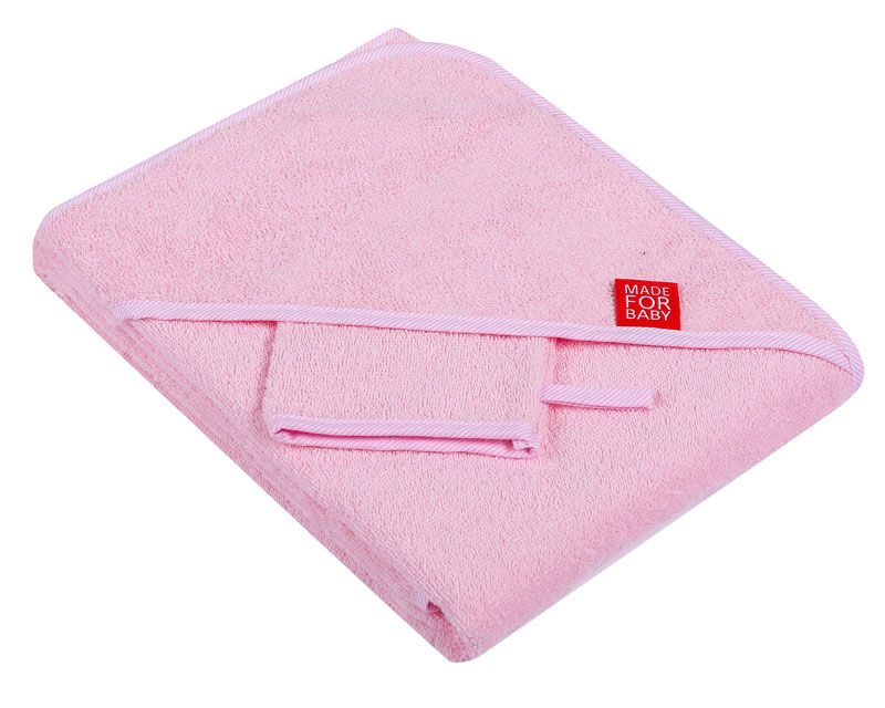 Aprašymas Rankšluostis kūdikiui su maudymo pirštyne "Blank" 80x80 cm rožinis
