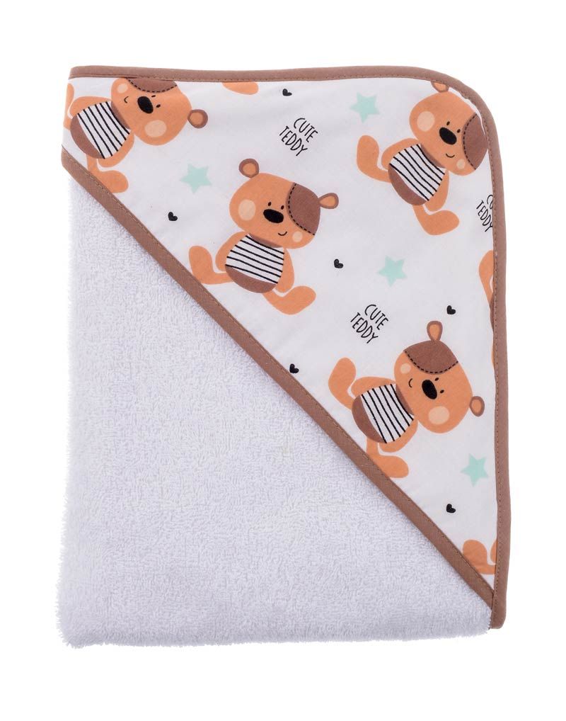 Rankšluostis kūdikiui "Cute Teddy" su gobtuvu 100x100cm "frotte" baltos sp.