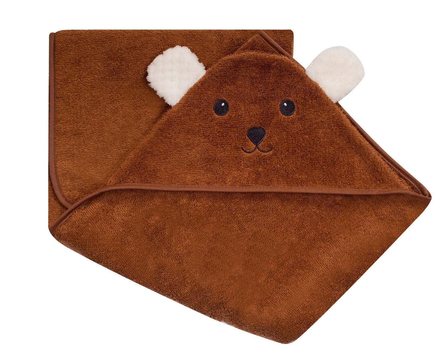 Rankšluostis kūdikiui "Bear" su gobtuvu 100x120cm rudas
