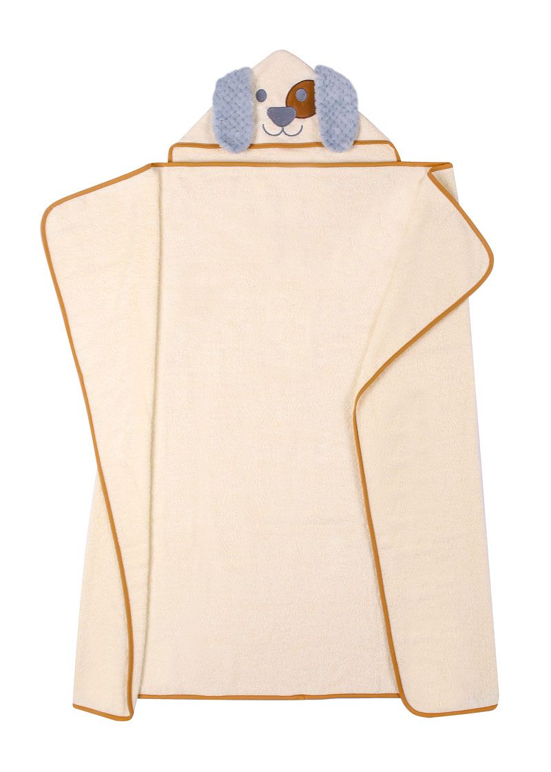 Rankšluostis kūdikiui "Dog" su gobtuvu 100x120cm smėlio spalvos