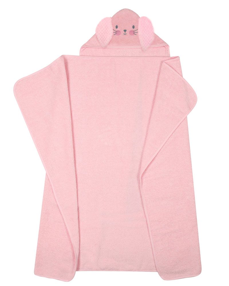 Rankšluostis kūdikiui "Bunny" su gobtuvu 100x120cm rožinis