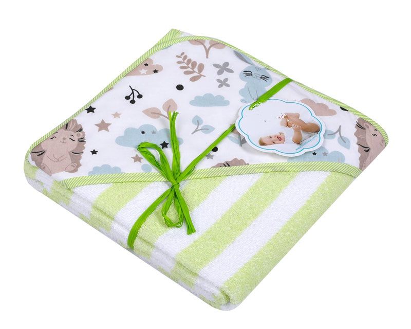 Rankšluostis vaikui su gobtuvu "Stripes" 100x100cm žalias