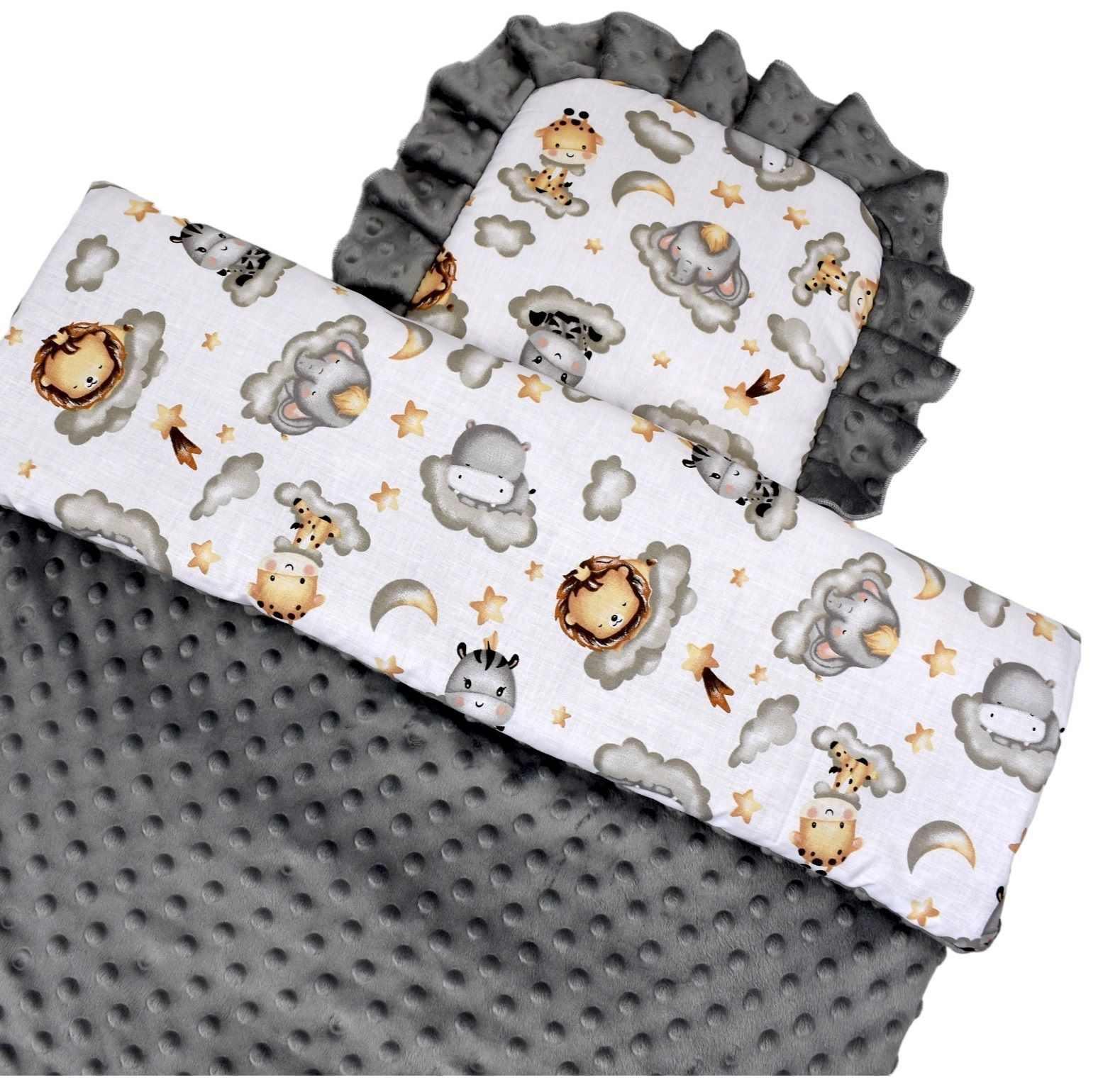 Smagus, gražus ir minkštas komplektukas Jūsų kūdikiui, kuris gali būti naudojamas vežimėlyje, manieže ar lovytėje.