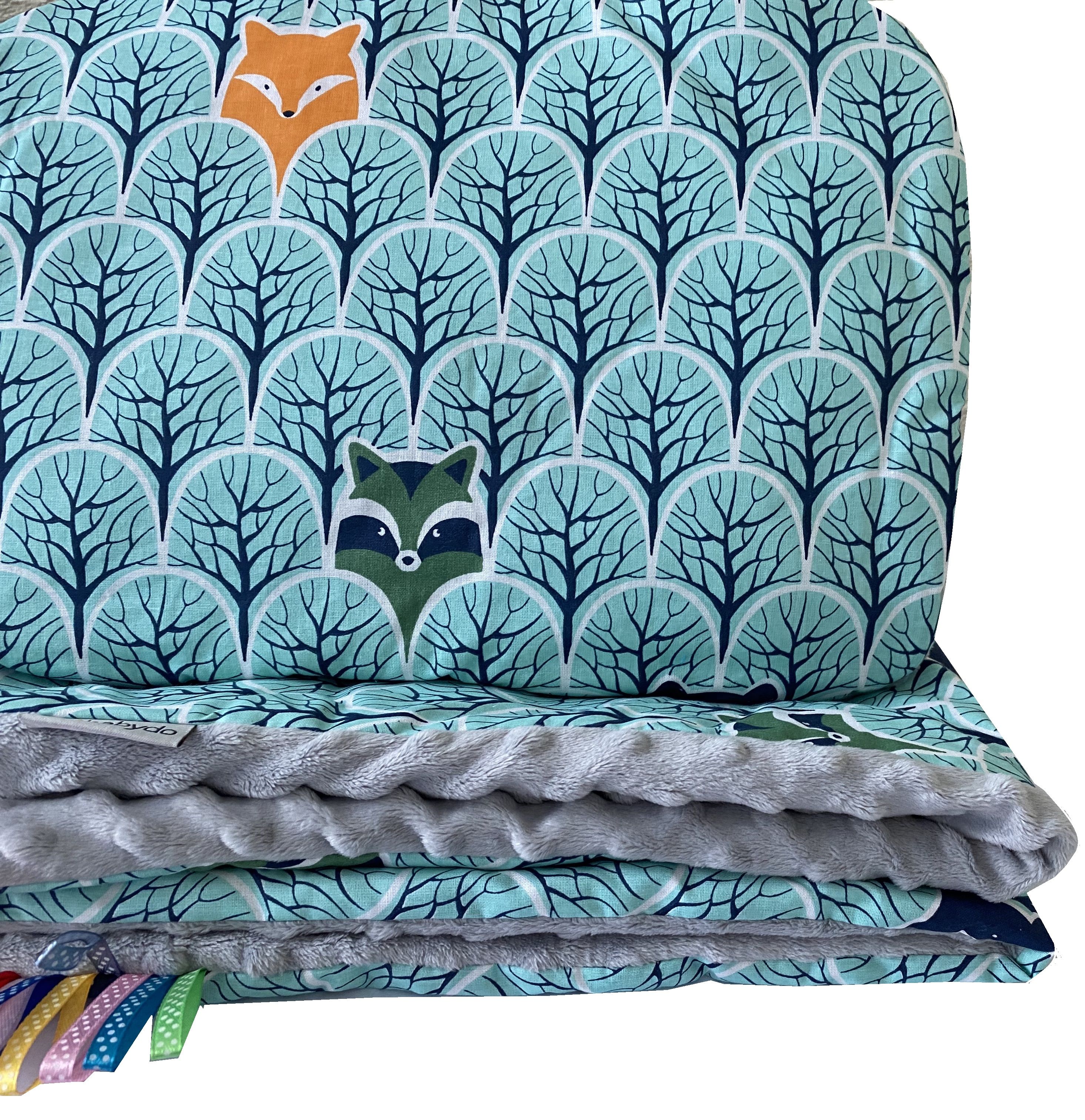 Aprašymas Komplektas kūdikio vežimėliui "Kuku" su miško gyvūnėliais ir pilku minky