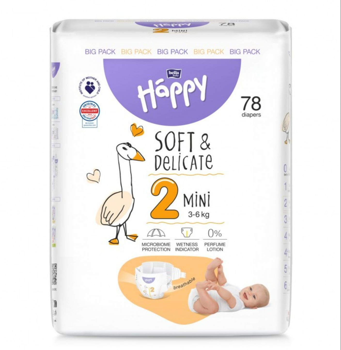 Aprašymas Sauskelnės kūdikiams BELLA Mini "2" 3-6 kg 78 vnt Soft&Delicate