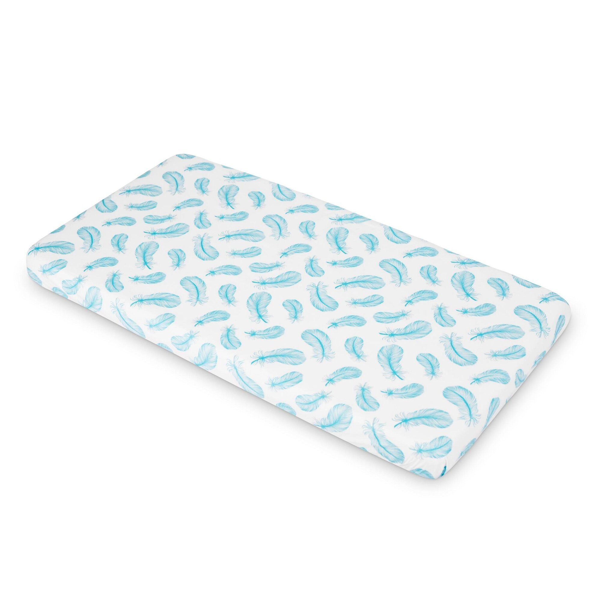 Sensillo paklodė su guma, balta, mėlynos plunksnos, 120*60, 2213