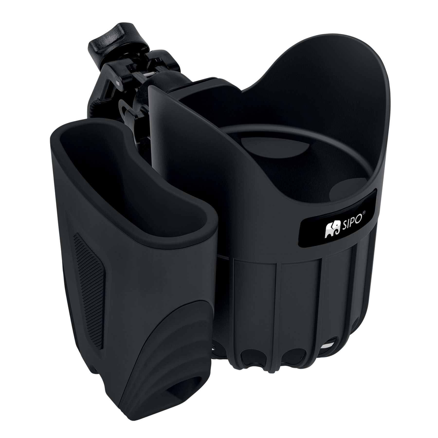 SIPO laikiklis – tai išmanus 2-in-1 vežimėlio aksesuaras, kuris sujungia universalaus puodelio laikiklio ir telefono laikiklio funkcijas.