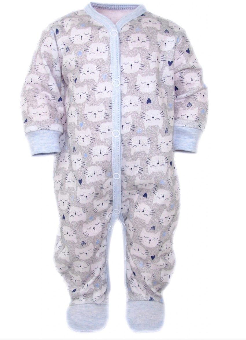 Aprašymas Šliaužtinukai kūdikiui "Cats" melsvos spalvos