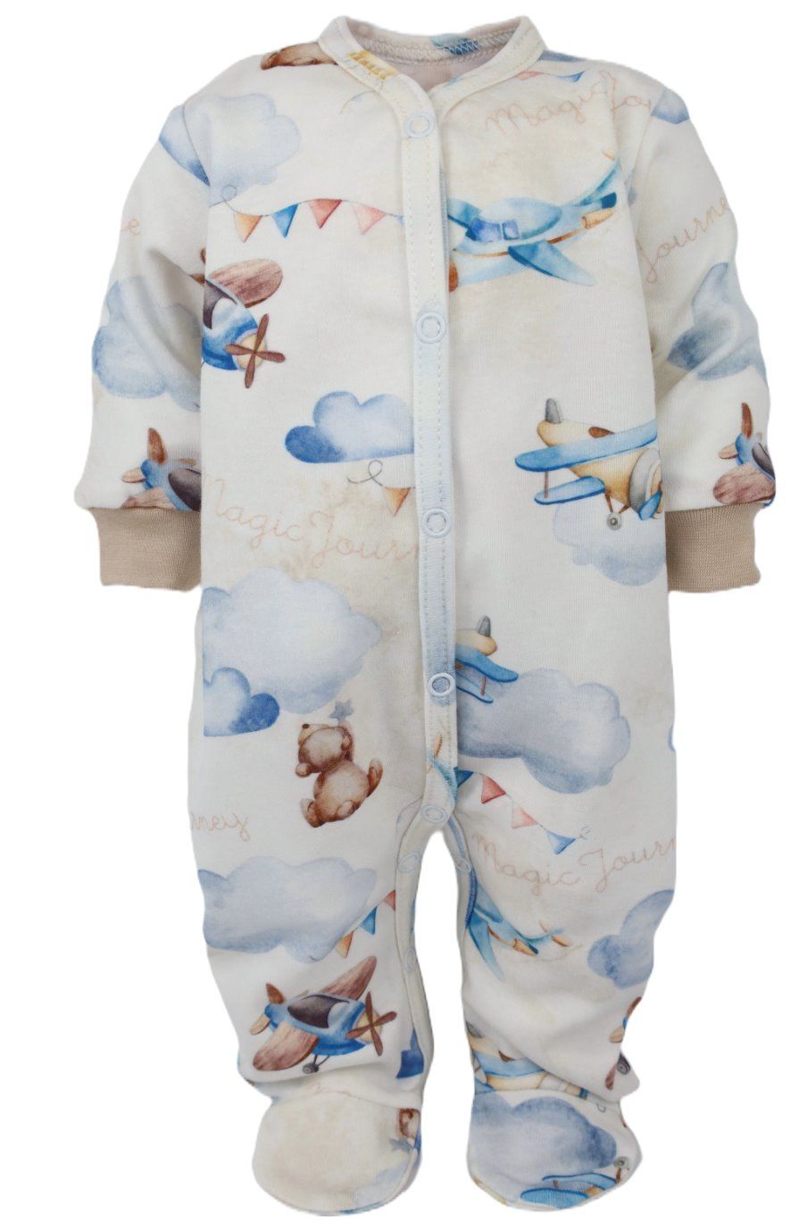 Žavus ir patogus medvilninis kūdikio kombinezonas su linksmu lėktuvų, balionų ir meškiuko spaudu. Šis mielas drabužis pagamintas iš švelnios ir kvėpuojančios medvilnės, kuri puikiai tinka kūdikio odai ir užtikrina komfortą visą dieną. Žaismingas dizainas su lėktuvais, spalvingais balionais ir draugišku meškiuku, patogus kirpimas leidžia laisvai judėti ir žaisti. Puikus pasirinkimas kasdieniam dėvėjimui, tiek žaidimams, tiek ramiems miegui!