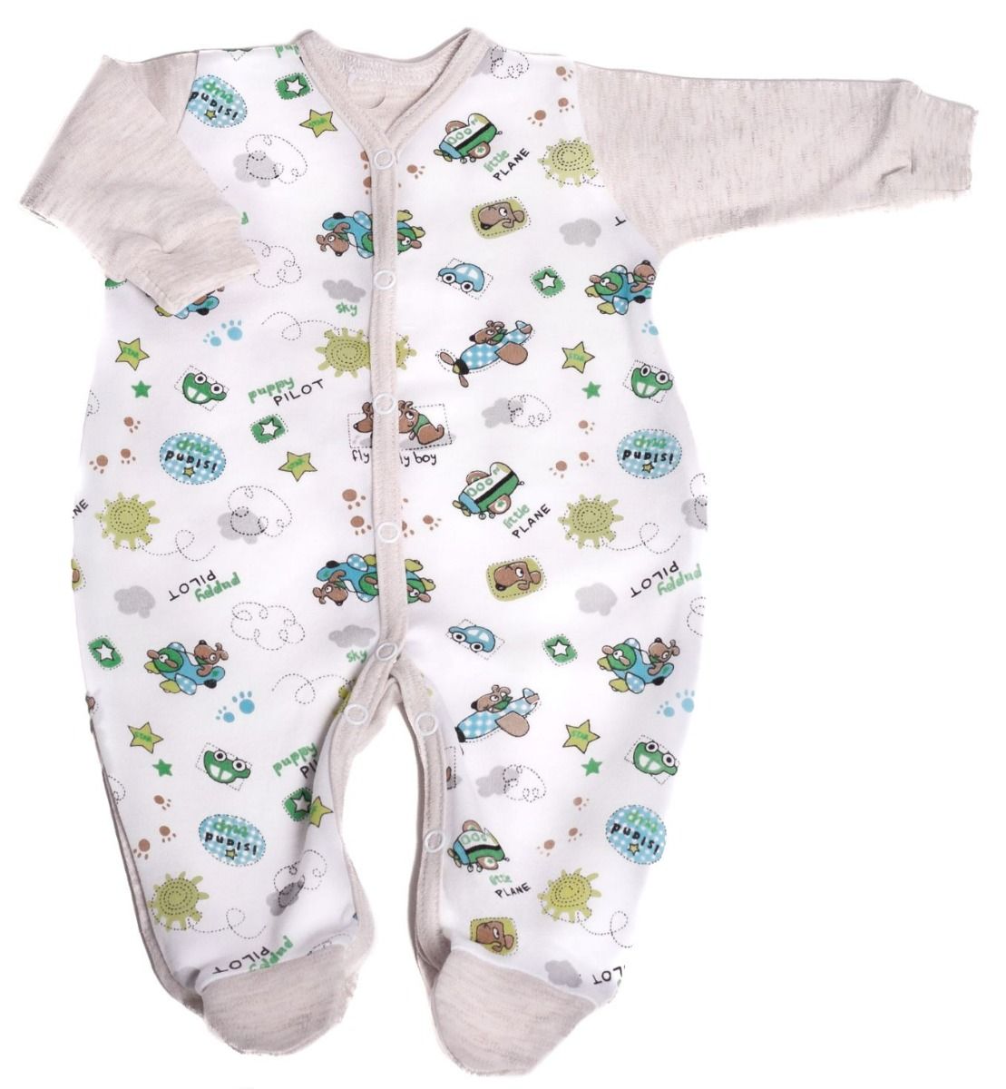 Šliaužtinukai kūdikiui "Pilot" balta medvilnė su spalvotais lėktuvais