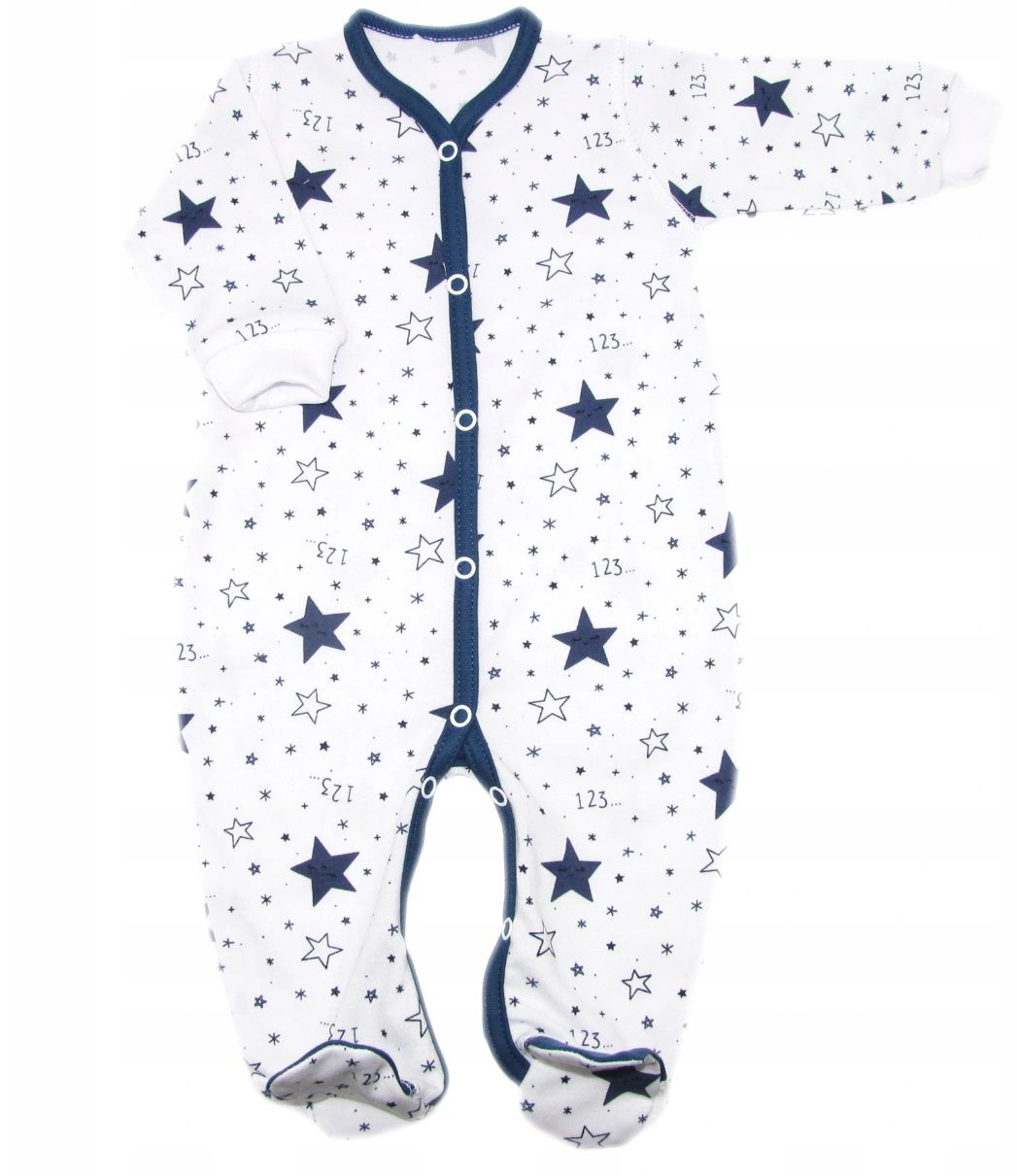 Aprašymas Šliaužtinukai kūdikiui "Navy stars" balta medvilnė su melsvos spalvos žvaigždutėmis