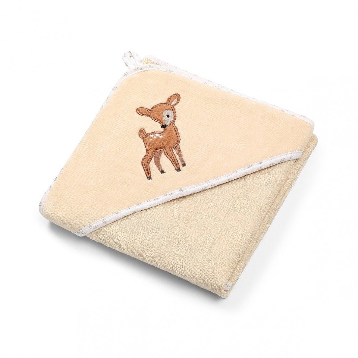 Veliūrinis rankšluostis kūdikiui "Bembi" su gobtuvu 100X100cm kreminis