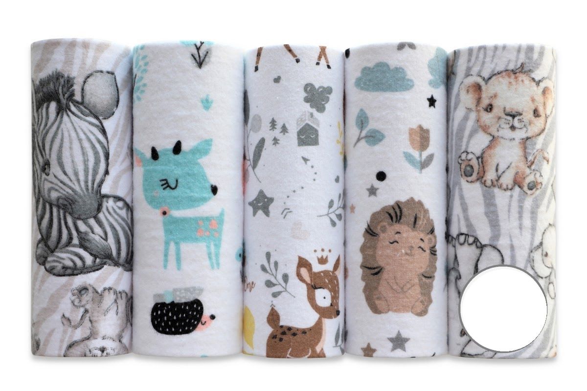 Flanelinių vystyklų rinkinys kūdikiams kurį sudaro 5 vienetai flanelinių vystyklų.