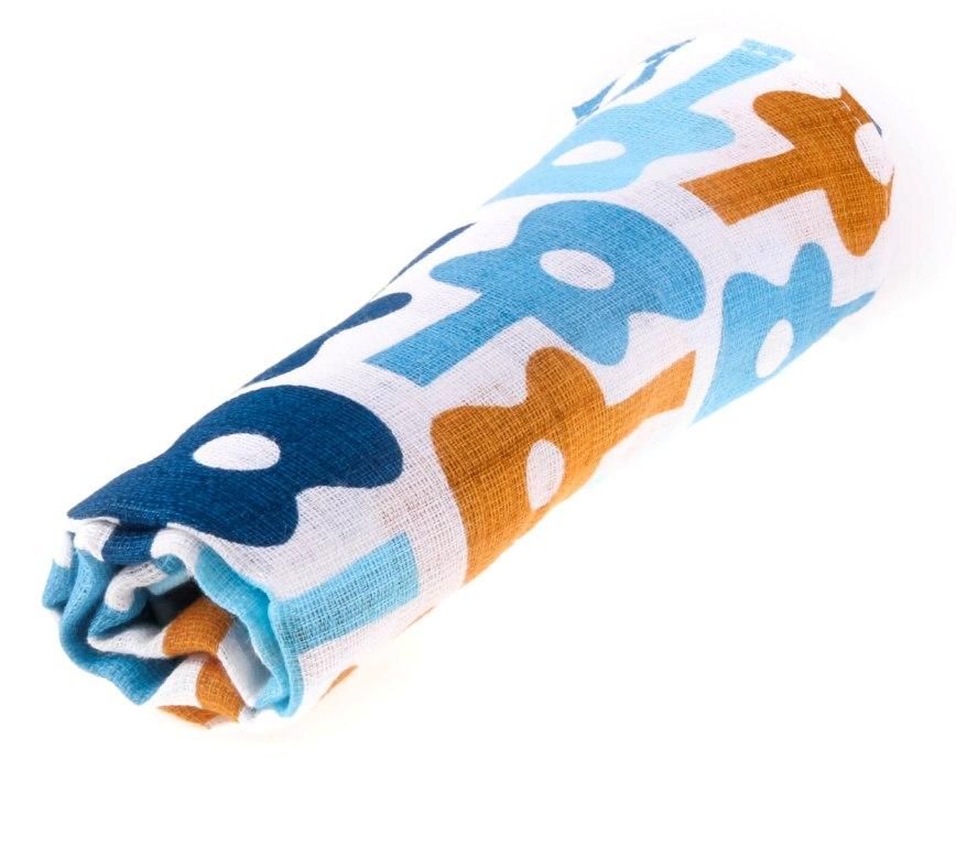 Vystyklas kūdikiui iš marlės 100x80cm "Gitaros" mėlynos spalvos