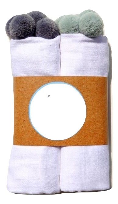 Klasikinis vystyklas kūdikiui iš aukštos kokybės medvilninės marlės LUX kategorijos, yra patvarus ir pasiūtas iš didelio tankumo marlės, vystyklas užbaigtas ir papuoštais gražiais kutais (pomponais) mėtinės ir pilkos spalvos .